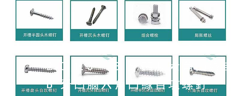 1.螺絲釘按照名稱可分為 機螺釘、自攻螺釘、鉆尾螺釘、墻板釘、纖維板釘、木螺釘、六角木螺釘、不脫出螺釘、組合螺釘、微型螺釘、家具螺釘、電子螺釘 2.按照頭型可分為 1)六角頭(hexagon head)2)六角頭法蘭面(hexagon