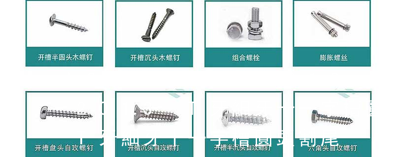 主要分類包括普通螺絲、機螺絲、自攻螺絲和膨脹螺絲三種。 有頭螺釘Cap screw 過去限于全牙的扣件。 六角頭螺釘Hex cap screw與大六角螺栓Hex bolt 顧名思義為頭部為六角型的外螺紋扣件,設計為使用扳手轉動。依照ASME B18.2.1標準,六