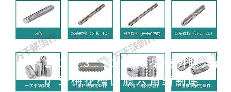 主要分類包括普通螺絲、機螺絲、自攻螺絲和膨脹螺絲三種。有頭螺釘Cap screw 過去限于全牙的扣件。六角頭螺釘Hex cap screw與大六角螺栓Hex bolt 顧名思義為頭部為六角型的外螺紋扣件,設計為使用扳手轉動。依照ASME B18.2. 不銹鋼三角牙螺絲 Stainless Steel Tri-Lobular Thread Screws 型號說明 P是指頭型是PAN頭;A是指尖尾牙,B是指平尾牙,即PA圓頭尖嘴鋼牙,PB圓頭平嘴鋼牙。自攻類:◆圓頭自攻螺絲PA ◆圓頭平尾自攻螺絲PB ◆圓頭割尾自攻