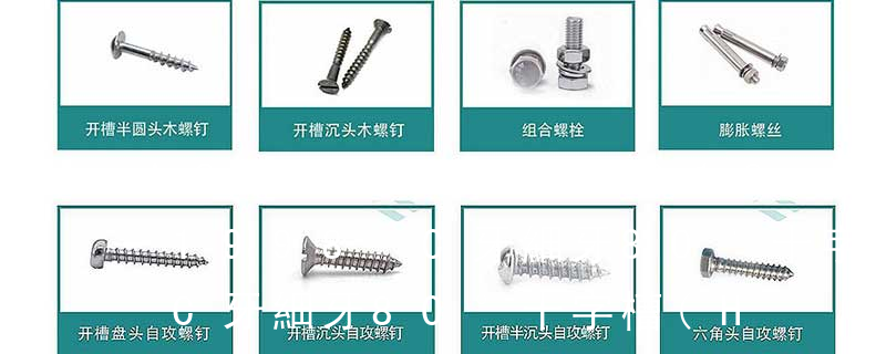 B-1: Sheet Metal Tapping Screw. (鐵板牙自攻螺絲)B-2: Plastic Tapping Screw. ( 塑料用, 自攻螺絲)C: Wooden Screw : 木工螺絲 D: Drywall Screw : 水泥墻螺絲 三. 常見螺絲材質:a.Low Carbon Steel :低碳鋼 1)開槽普通螺釘多用于較小零件的連接。它有盤頭螺釘、圓柱頭螺釘、半沉頭螺釘和沉頭螺釘。盤頭螺釘和圓柱頭螺釘的釘頭強度較高,瑁在普通的部件連接上;半沉頭螺釘的頭部呈弧形,安裝后它的頂端略外露,且美觀光滑,一般用